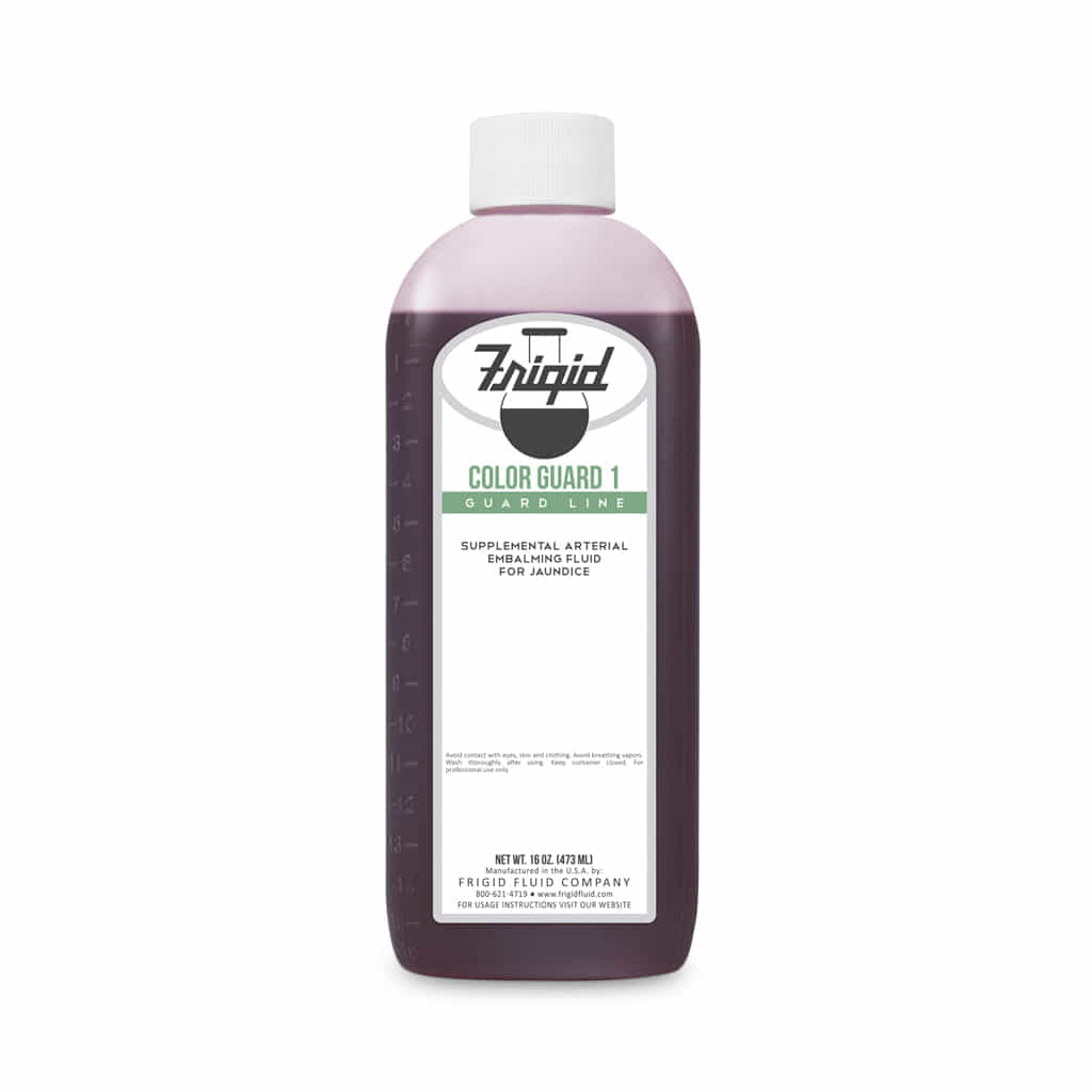 Color Guard 1 to nowe rozwiązanie stosowane podczas balsamacji ciał zakażonych żółtaczką oraz mocno zażółconych. Związki chemiczne w nim zawarte wchodzą w reakcję z bilirubiną i pomagają w uzyskaniu naturalnego koloru skóry. Pomaga w widoczny sposób zredukować zażółcenie na twarzy oraz kończynach. Używany jako dodatek do płynów dotętniczych.