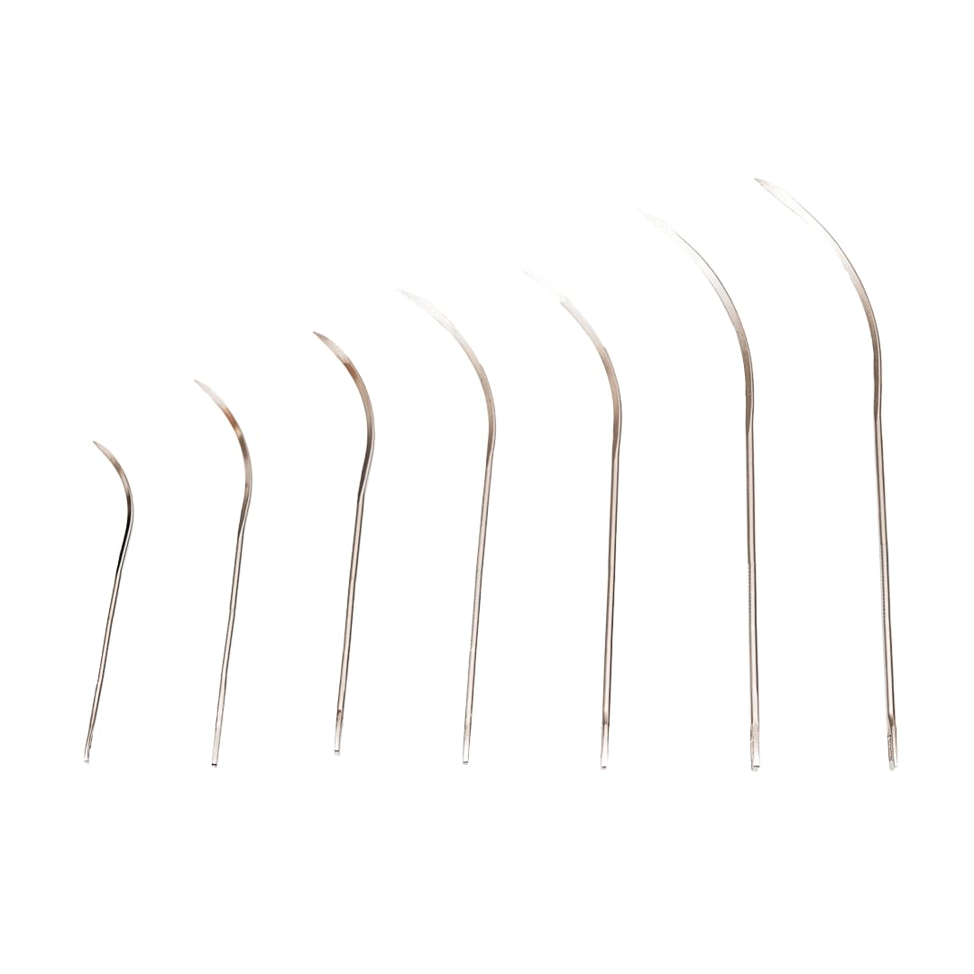 Igły sekcyjne w kształcie litery J (łyżwa), wykonane z wysokiej jakości stali chirurgicznej.