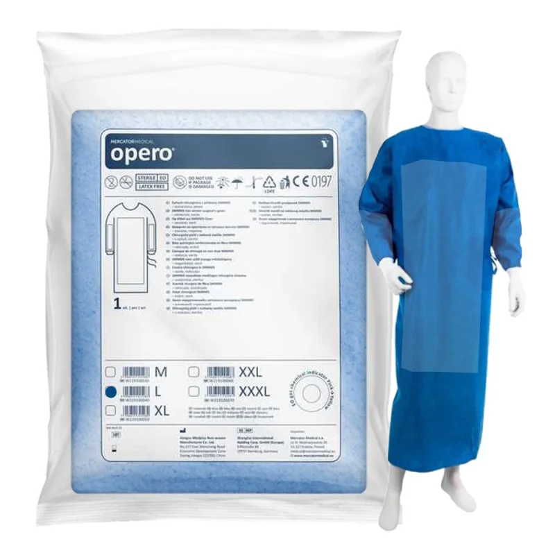 - materiał fartucha składa się z pięciu warstw, łączenia wykonane metodą ultradźwiękową, która zabezpiecza przed wniknięciem drobnoustrojów