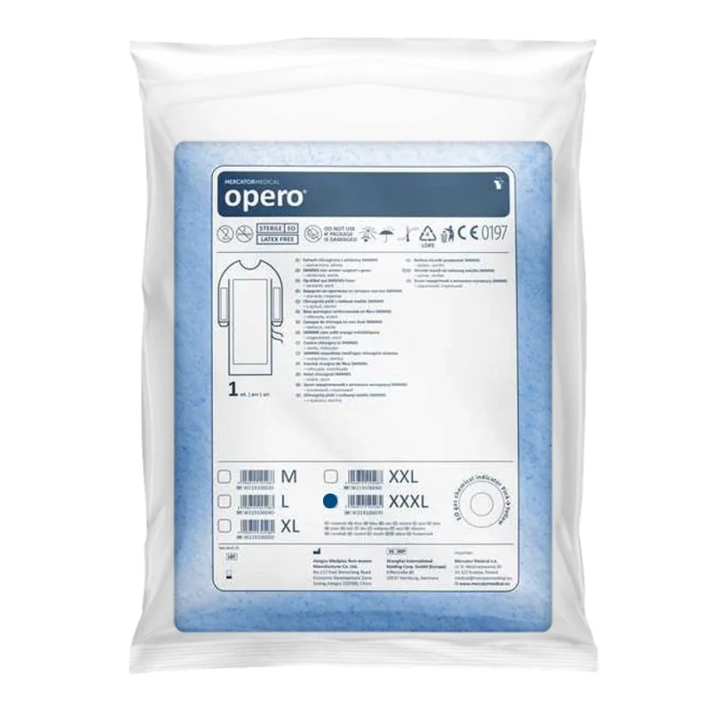 Fartuch sekcyjny wzmocniony dostępny w rozmiarze M, L, XL, XXL i XXXL z włókniny SMMMS, z dodatkowym wzmocnieniem z przodu, zawiązywany na troki. Fartuch charakteryzuje się dodatkową odpornością na bakterie i płyny.
